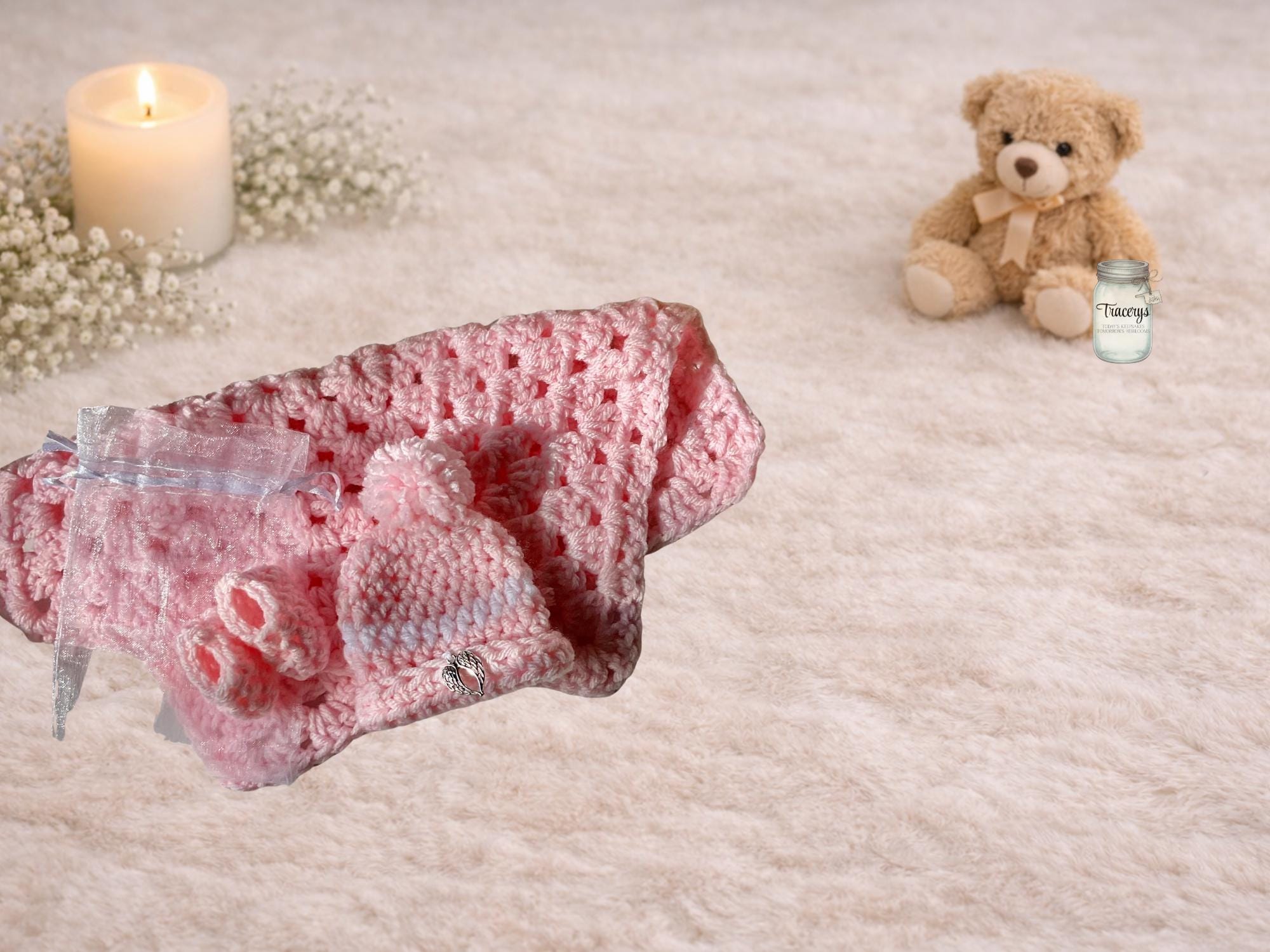 This hand-crocheted miscarriage keepsake set offers a soft, heartfelt way to honor a precious life that was gone too soon. Each piece is created with love, intended to bring a measure of comfort during a time when words often fall short.