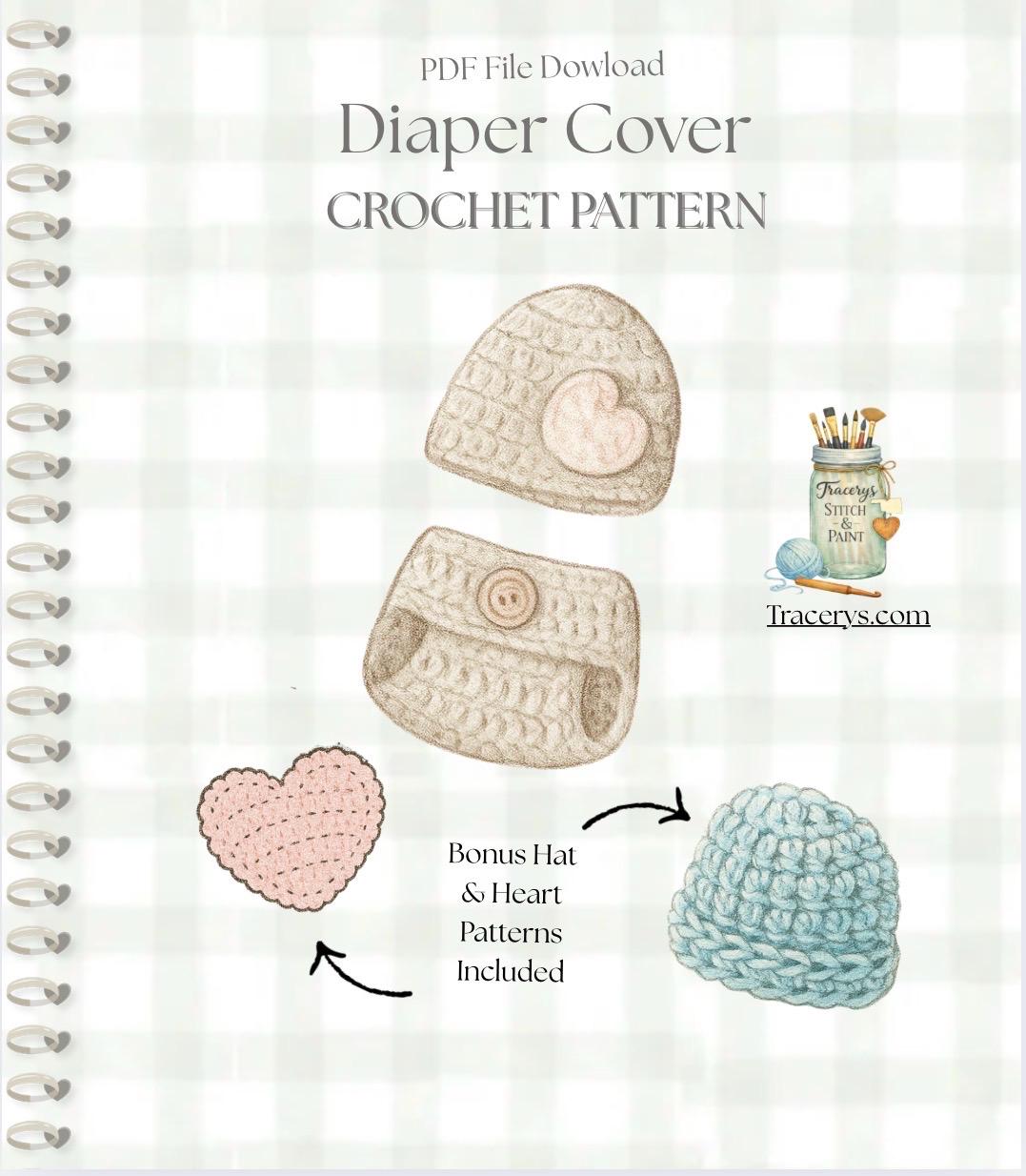 Crochet Diaper Cover Pattern + Bonus Hat & Heart | PDF Instant Download | Newborn Photo Prop – Baby Shower Gift – Beginner Friendly
