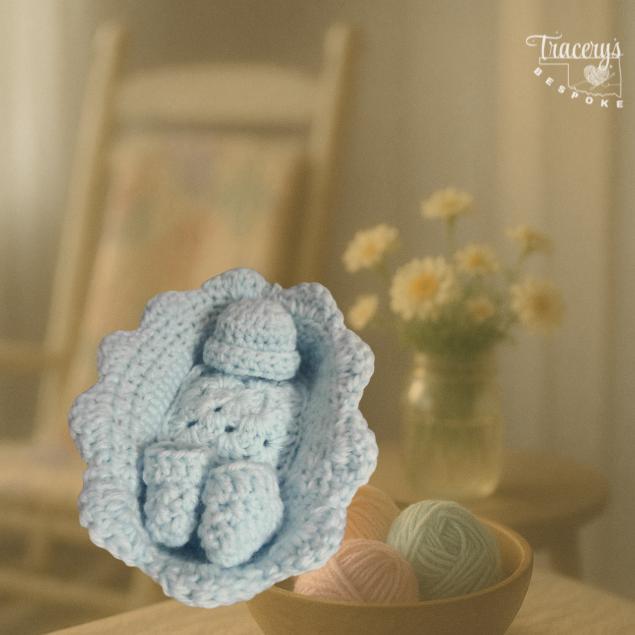 Made to Order - This set includes a Cradle, Micro Blanket Cover, Micro Hat and Keepsake Booties***