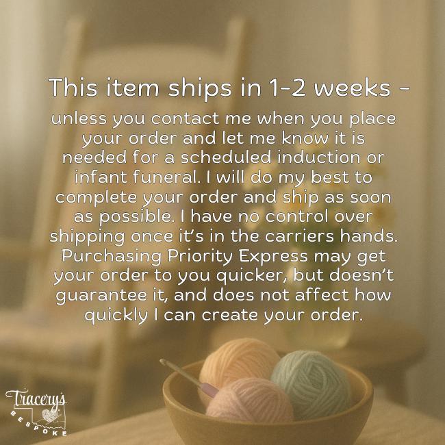 I started making the preemie booties and Octopus several years ago and then kept adding things like mini blankets and hats. Then realized having something special to hang onto and keep might help some grieving parents so added the cocoons which turned into the cuddle cradle. I know it's scary and can be difficult to hold and cuddle a micro preemie, especially when families are having to say goodbye in the hospital.