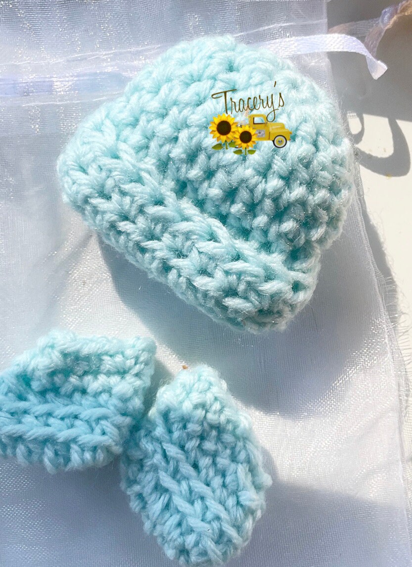 This hand-crocheted micro booties, hat and micro blanket set is made with delicate care and thoughtful intention. Designed for the tiniest of little ones…whether as a keepsake for NICU babies, a remembrance item, or a gentle comfort gift… this set is truly small in size but full of meaning.
