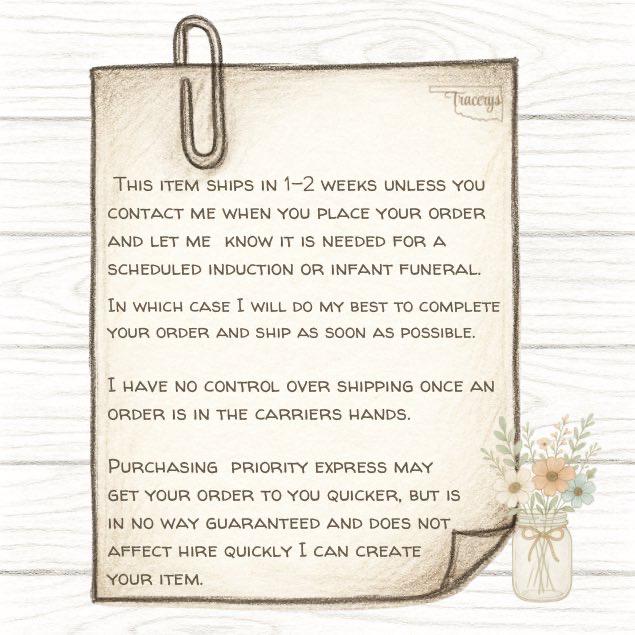 This item is made to order, and I will lovingly create it just for you. If you have a specific color request or wish to coordinate it with another memorial item, please don’t hesitate to reach out.