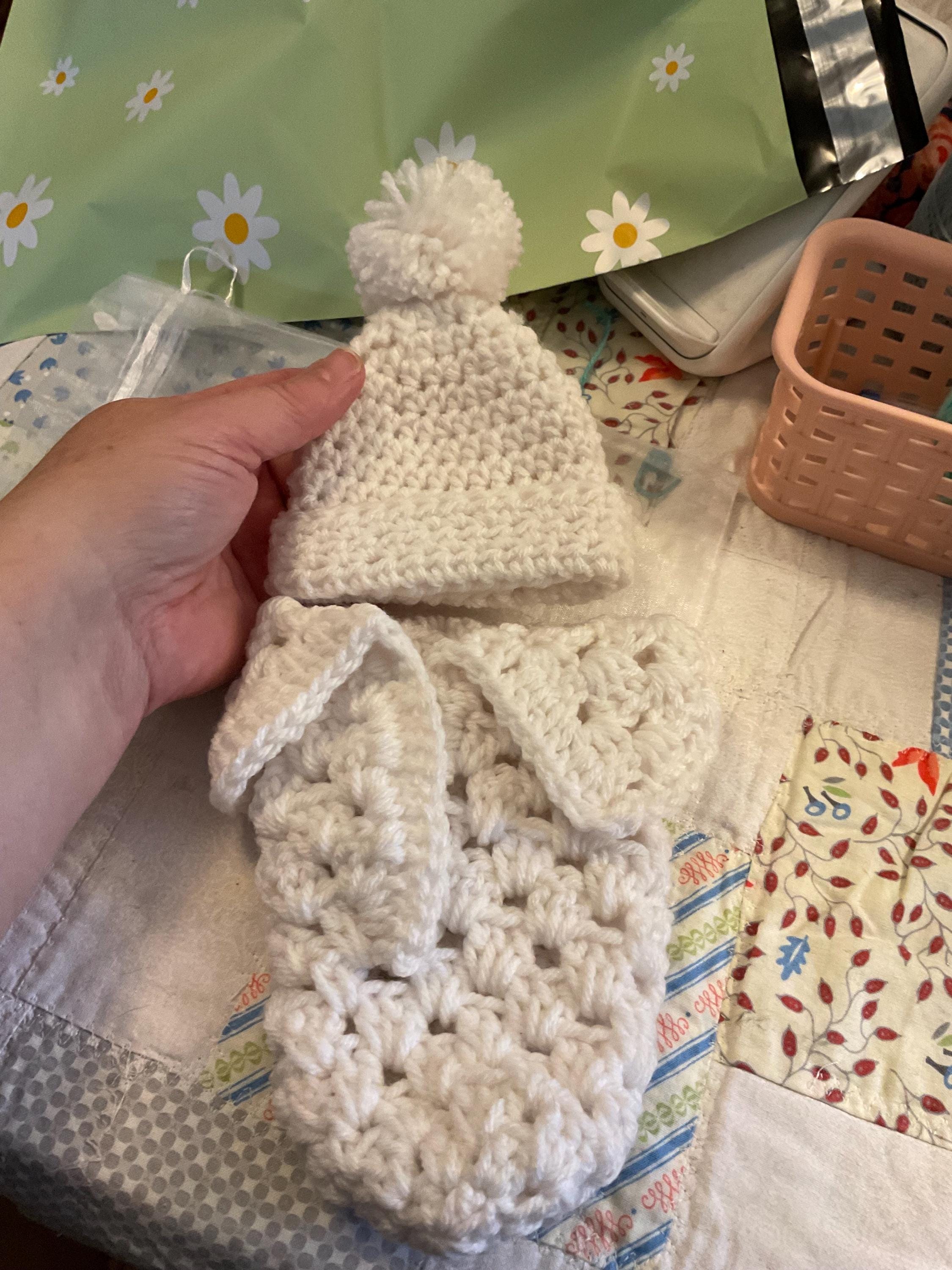 Keywords: miscarriage, angel baby, infant loss, baby funeral, memorial keepsake, crochet cocoon, baby bunting, remembrance, handmade, stillbirth