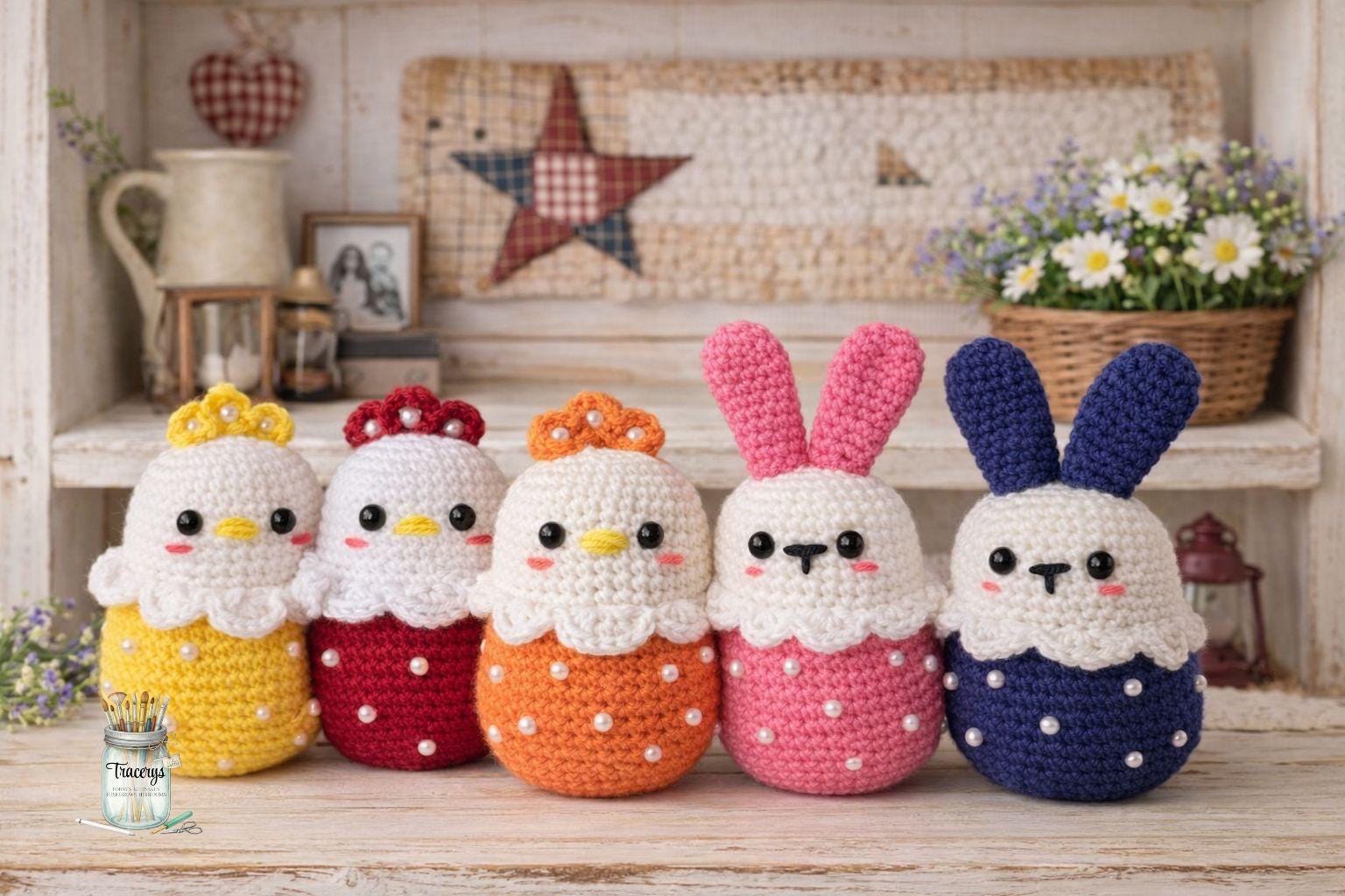 These make the cutest Easter basket stuffer, nursery shelf decor, spring tiered tray accent, or a gift for someone who loves cozy handmade cuteness.