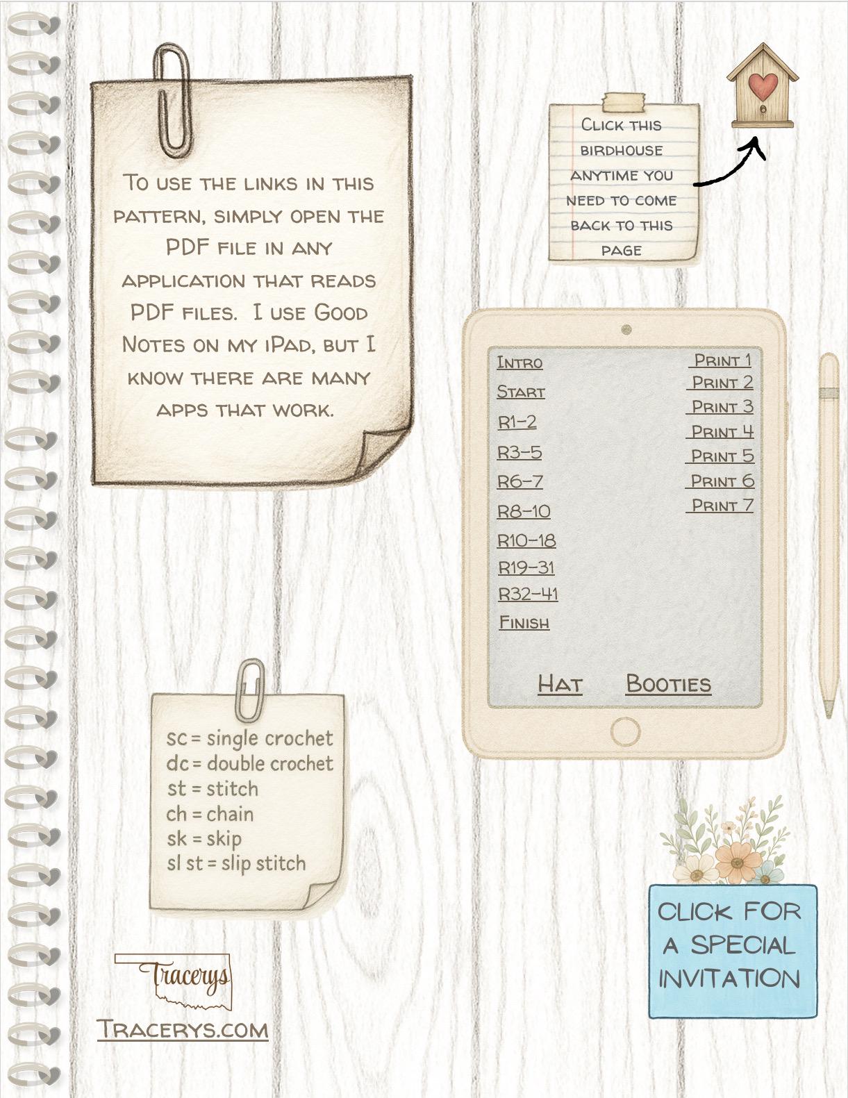 You will receive a fully linked PDF file which you can open in any app that reads PDF files. I personally use a digital planner app on my iPad to read and mark my patterns.