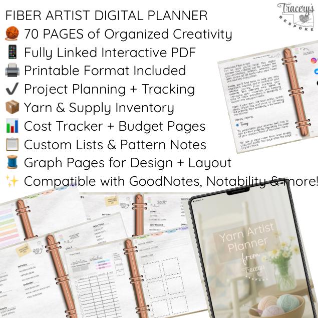 Stay organized and inspired with this all-in-one digital planner designed specifically for fiber artists! Whether you’re a crocheter, knitter, or weaver, this planner helps you manage every part of your creative process with clarity and ease.
