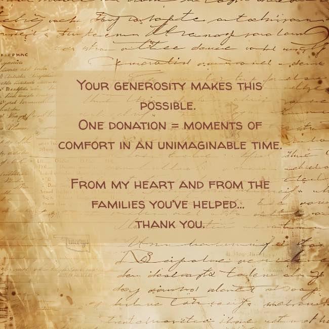• Donated to families, hospitals, or organizations that support bereaved parents