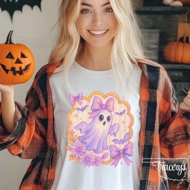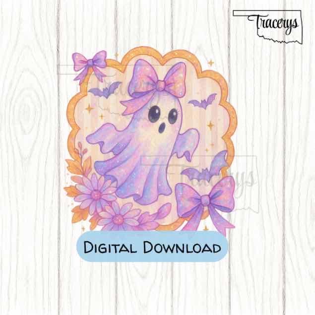Add a magical, pastel touch to your Halloween projects with this Pastel Iridescent Ghost with Bow PNG! Featuring a sweet ghost with big, sparkling eyes, a shimmering pastel rainbow bow, whimsical bats, and glittery florals in soft purples, pinks, and golds, this high-quality clipart is perfect for your spooky-cute creations.
