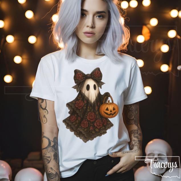 Use this high-resolution PNG for sublimation, Halloween t-shirts, mugs, stickers, scrapbooking, greeting cards, or printable wall art. Whether you’re crafting a gothic fall vibe or designing something enchantingly eerie—this ghost has you covered (in roses, of course). 🖤🌹🎃