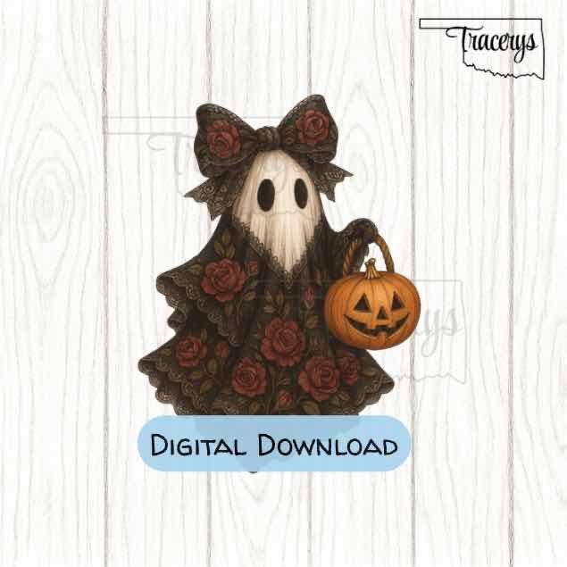 Step into a hauntingly elegant Halloween with this Floral Lace Ghost PNG! Draped in dark lace and vintage roses, this ghostly figure brings both gothic charm and seasonal whimsy-complete with an orange jack-o’-lantern candy bucket and big expressive eyes. Perfect for spooky season lovers with a soft spot for moody florals!