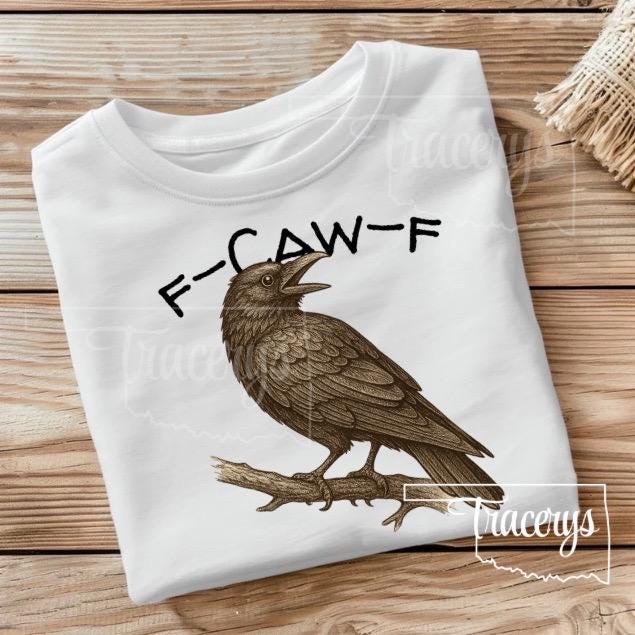 Funny crow PNG, raven clipart, sarcastic crow design, vintage bird PNG, humor crow graphic, funny sublimation PNG, gothic raven art, F-CAW-F crow, dark humor PNG, bird lover gift, black crow illustration, vintage raven PNG, Halloween crow clipart, rustic crow art, farmhouse bird décor