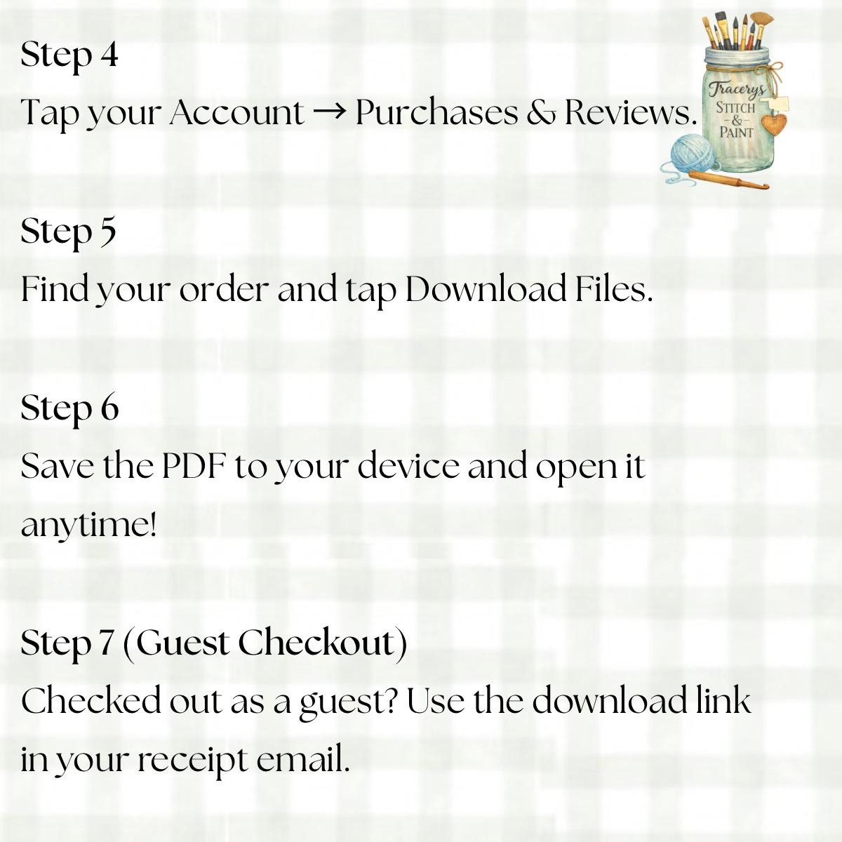 Your files will be available to download immediately after payment clears. You’ll receive a PDF file you can print or use on your phone/tablet.