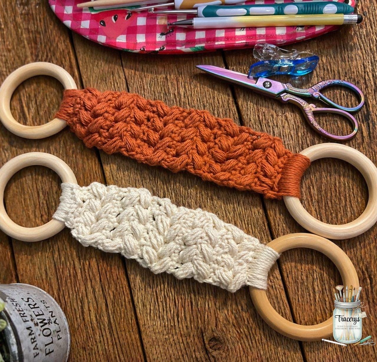 Add a cozy farmhouse touch to your kitchen or bathroom with these handmade crochet towel holders.